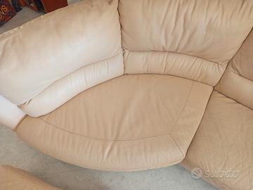 Marca Divani e Divani by Natuzzi. Divano in vera pelle da 3 o 4 posti con penisola, Colore beige. Vendo per cambio abitazione. Trasporto a carico dell' acquirente.