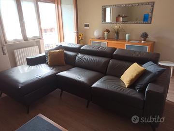 Divano in vera pelle con movimento relax a battera lungo m 280x m1 penisola lunga m1,70 alzatine testa regolabili.