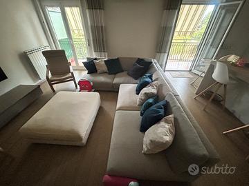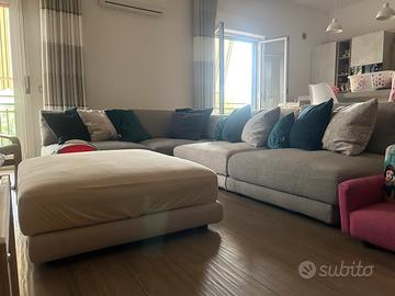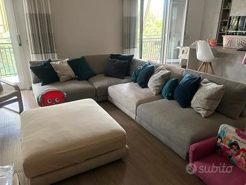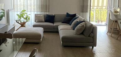 Divano irresistibile, informale e versatile. Le sue forme squadrate giocano con la morbidezza e la sua modularità e ti consente di comporlo come vuoi. Il divano rappresenta una delle eccellenze della linea Maestro (linea superior) di PoltroneSofà. Interamente fatto in piuma d’oca (sia le sedute che i cuscini) le sue dimensioni sono L: 322cm, P: 302cm, H: 80cm, ed è totalmente sfoderabile. Il divano è bi-colore parte in tessuto trama incrociata di colore grigio chiaro, parte in tessuto scamosciato di colore beige, inoltre è accessoriato di n. 8 cuscini bi-colore Beige e blu in dotazione.