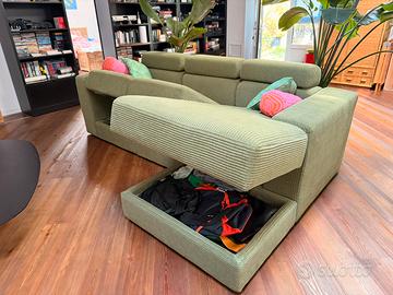 Divano JÄTTEBO di IKEA, 3 posti con chaise-longue, sedute contenitore e 3 poggiatesta. Fodere Samsala giallo scuro-verde a coste. Il divano ha poco piu di un anno di vita e si trova al piano terra, a Milano. Ritiro a carico dell’acquirente. Prezzo leggermente trattabile