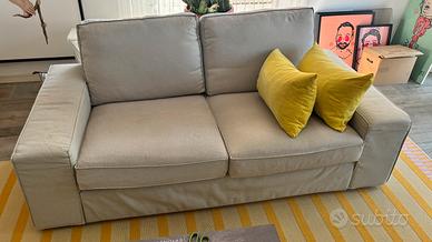 Vendo divano IKEA KIVIK a 2 posti, in tessuto di colore grigio chiaro (come da foto), in eccellenti condizioni. Condizioni: Il divano è stato usato con cura ed è in ottimo stato, ben conservato. Non presenta macchie visibili o strappi. Caratteristiche: Modello molto confortevole grazie alla seduta profonda e ai braccioli ampi. Completamente sfoderabile: tutte le fodere sono lavabili in lavatrice. Struttura robusta e facile da smontare per il trasporto (la parte centrale si divide e i braccioli si staccano). Dimensioni: Larghezza: 190 cm Profondità: 95 cm Altezza: 83 cm Altezza seduta: 45 cm