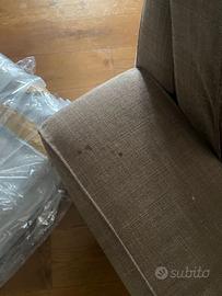 Una piccola macchietta sul bracciolo (che credo possa venire via tranquillamente con sgrassatore tipo chant e cler) in ogni modo il tessuto è sfoderabile e lavabile.