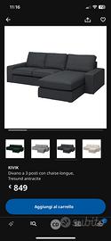 Per sopraggiunti problemi di spazio vendo divano 3 posti più chaise longue e poggiapiedi contenitore Ikea Kivik colore antracite.