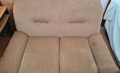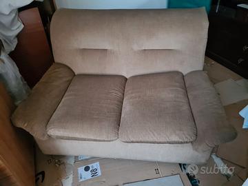 Divano 2 posti scamosciato, comodo e in buono stato. Non presenta usure a cedimenti di elasticità. Molto pratico per piccoli spazi