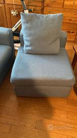 Vendesi divano colore blu avio in perfette condizioni, con tre sposti e poltrona staccabile. Materiale di tessuto cotone di PoltroneSofà. Anno 2016 ma usato raramente. Misure 245cm per 93cm.