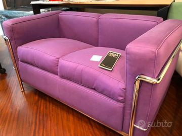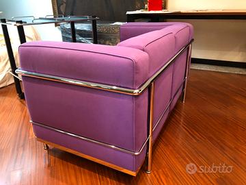 Vendo divano immacolato LC2 di Cassina. Le Corbusier. Struttura in acciaio cromato. 2 posti. Colore Viola.