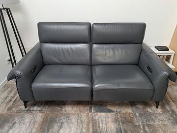 Modello dal design inconfondibile, caratterizzato da un tratto leggero e distintivo. Il divano è dotato di meccanismo elettrico con doppio motore, azionabile attraverso una pulsantiera posta sul lato interno del bracciolo, per regolare a proprio piacimento poggiatesta e poggiapiedi.