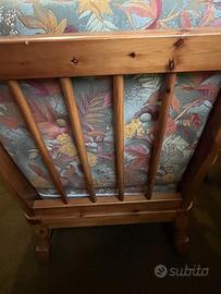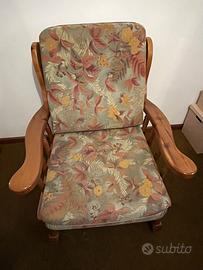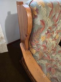 Divano in legno a tre posti più due poltrone. Buone condizioni, alcuni segni di usura. Ideale per rustici, chalet, case di campagna/montagna. Vendibile anche senza cuscini. Prezzo trattabile. Contattare tramite chat subito.