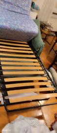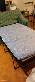 Carinissimo divano letto in tessuto verde, utilizzato solamente una volta, in perfette condizioni. misure: lunghezza 150 cm, altezza 90 cm, profondità totale 73 cm.