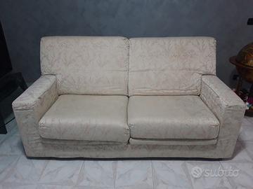 Vendo divano letto composto uno da due e uno da 3 posti sono esclusi i cuscini che vedete in foto i colori dei divani senza il copridivano sono uno é verde e l’altro è bianco panna