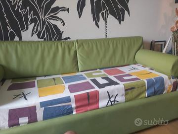 Vendo, per cambio destinazione d'uso della stanza, divano letto con 2 letti singoli. Rivestimento in pelle sintetica lavabile, letto sottostante con meccanismo di apertura facilitato. Doghe in legno. Ottimo stato, utilizzato per lo più come letto per gli ospiti. Il prezzo è comprensivo dei materassi, anch'essi in ottimo stato. Disponibile già smontato.