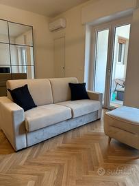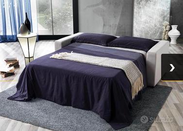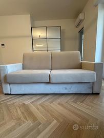 Vendo divano letto 2 posti colore beige con pouf abbinato, in condizioni pari al nuovo. Il divano era presente in una casa già arredata e lo vendiamo semplicemente perché abbiamo deciso di cambiarlo con un altro modello. Il divano è moderno, molto comodo e si trasforma facilmente in letto. Ideale per soggiorno, studio o stanza degli ospiti. Tessuto chiaro elegante che si adatta facilmente a diversi stili di arredamento. Dimensioni: larghezza 1,96 profondità 94 altezza da terra 86 Caratteristiche: •Divano letto 2 posti •Colore beige •Pouf coordinato incluso •Condizioni - nuovo •Facile apertura del letto