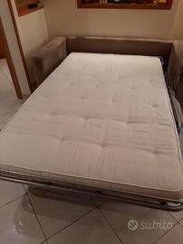 Vendo divano letto 2 posti, color beige, con rivestimento rifatto ex novo lo scorso anno. Dimensioni Larghezza totale: cm. 174; Braccioli cm. 15; Altezza cm.83; Profondità cm. 84; Letto cm. 122 x 207 comprensivo di materasso. Nessun difetto come da foto. Ottime condizioni. Trasporto al carico dell'acquirente.