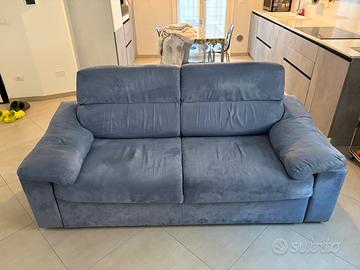 Vendo divano letto , 2 posti tessuto alcantara azzurro ben tenuto, disponibile da fine Aprile. Da ritirare