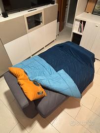 Vendo divano letto 2 posti in tessuto grigio scuro, in buone condizioni.
