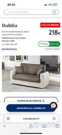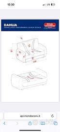 Divano da 2 posti apribile con contenitore sotto. Dimensioni precise in foto. Ottimo stato, no graffi o segni d’usura.