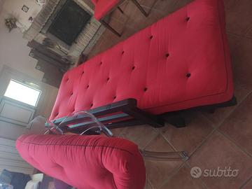 È in legno massello di pino scandinavo con futon 100% cotone con inserto in lattice e schienale imbottito in cotone.