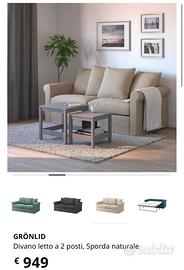 Vendo divano letto IKEA GRÖNLID a 2 posti nella versione Sporda naturale (beige).
