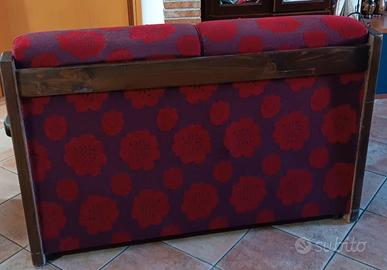 Vendo divano letto 2 posti con struttura in legno massello e rete metallica estraibile compreso di due cuscini. Meccanismo perfettamente funzionante. Utilizzabile sia come divano che come letto per ospiti. Struttura solida e stabile. Tessuto in buone condizioni come da foto con un piccolo strappo nel tessuto e. Ideale per casa vacanza, studio, taverna o camera ospiti. prezzo trattabile, ritiro a carico dell'acquirente.