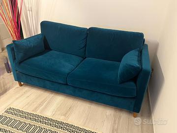 Vendo divano letto 2 posti di velluto color petrolio acquistato da Maison du Monde. Ottime condizioni, poco usato. Disponibile da subito.