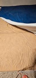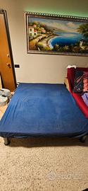 Vendo divano letto usato pochissimo. 2 posti. Rete elettrosaldata in ottimo stato. Piccolo strappo della fodera del materasso che non ne limita l'utilizzo e si può riparare. Il lenzuolo blu è per far vedere il letto. La fodera originale di copertura è bianco panna