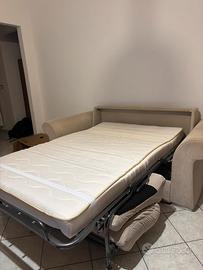 Divano letto beige 2 posti, ottime condizioni. Facile da aprire e comodo sia come divano sia come letto. Il letto equivale a un matrimoniale alla francese.