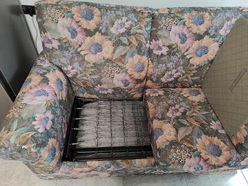 Divano letto 2 posti, composto da struttura, 2 cuscini seduta, 2 braccioli e 2 schienali. C'è la rete per un materasso da 1 piazza e mezza, meccanismo di piega a 3. MANCA IL MATERASSO Ritiro solo a mano