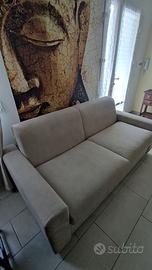 Vendo divano letto 2 posti in microfibra effetto pelle beige, sfoderabile e in buone condizioni. Igienizzato e sanificato