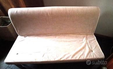 Divano letto 200x160 come da foto. Manca una doga (linea blu in foto) Il rivestimento in testa al materasso è sfilacciato, riparato con nastro adesivo come in foto. Trattabile