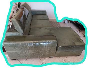 Divano letto Poltrone e Sofà, modello Arginelli 4 posti,poggia testa reclinabili, rivestimento in microfibra color muschio,facile da pulire ed ideale per possessori di animali. Chaise longe come da foto. Dimensioni 238x177x100. Dotato di cuscini lombari anch'essi in buone condizioni (non presenti in foto ma venduti insieme all'articolo). Il divano lo vedete pellicolato per proteggerlo ulteriormente dagli animali domestici (la pellicola è removibile senza conseguenze per il tessuto). Divano del 2018, in buone condizioni, senza strappi,graffi o macchie. Cuscini delle sedute sfoderabili e lavabili. Meccanismo di apertura perfettamente funzione (manuale a scorrimento), con materassino in dotazione in buone condizioni anch'esso (l'opzione divano letto utilizzata davvero raramente). Smontaggio e trasporto non inclusi nel prezzo ma a carico dell'acquirente. Previa accordo, articolo visionabile. Prezzo leggermente trattabile
