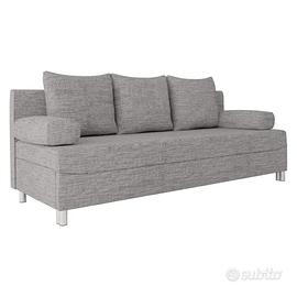 Divano letto 3 posti 192cm pieghevole matrimoniale grigio chiaro. Consegnato e montato a dicembre, vendo per cambio modello. Misure come nell'immagine. Comprensivo di puf separato