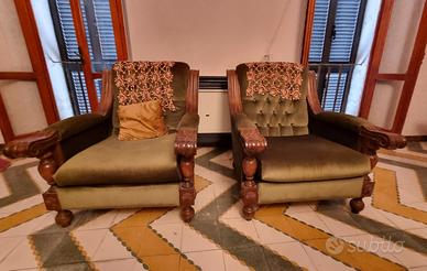Divano letto 3 posti, struttura in legno, color verde scuro. comodo e pratico. completo di 2 poltrone coordinate. vendibile separatamente. Prezzo trattabile