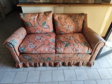 Fantasia floreale vintage, struttura solida e imbottitura ancora comoda. Il divano 3 posti ha un letto estraibile perfettamente funzionante, ideale per ospiti.