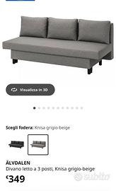Divano letto 3 posti ikea älvdalen colore grigio, con contenitore e tre morbidi cuscini. Per le misure guardare le immagini. Vendo causa inutilizzo, prezzo €180 poco trattabili. No perditempo! No affaristi!