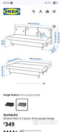 vendo divano letto 3 posti ikea alvdalen con 2 cuscini e contenitore, divano pari al nuovo, mai utilizzato in quanto in camera ospiti/studio. Colore beige.