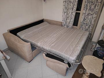 Nota: il divano ha un bracciolo danneggiato (struttura interna rotta). Il difetto non compromette la seduta né l’apertura del letto, e può essere riparato con poca spesa.
