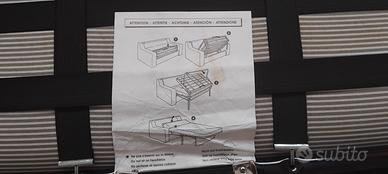 Divano letto 3 posti con doppia copertura su misura (grigia o azzurra) e cuscini accessori