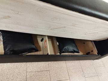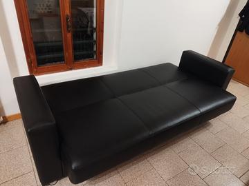Divano letto finta pelle nera, marca Bellona, 3 posti, diventa divano letto da una piazza e mezza.