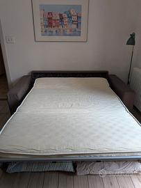 Divano letto 3 posti a ribalta, colore marrone.