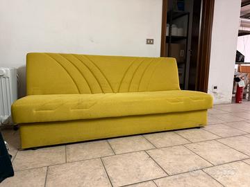 Divano-letto contenitore 3 posti, color ocra e in ottime condizioni. Tessuto in tela, comodo e pratico da pulire, presenta solo un po’ di polvere che può essere facilmente rimossa e lavata. Utilizzato solo per due mesi. Dimensioni: cm 192 x 88 x 84. Prelievo e trasporto a carico e cura dell’acquirente.