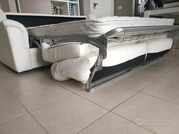 Divano Letto marca Chateaux d'Ax in vera pelle, colore bianco.