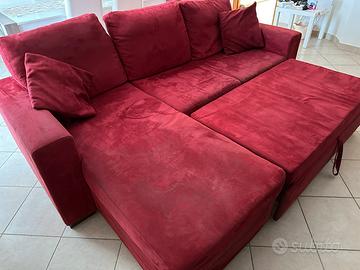 Bellissimo e comodissimo divano letto tre posti con chaise longue. Color rosso bordeaux. Tocco di stile per rinnovare la tua casa e rinnovare la tua zona di comfort. Per info e ulteriori foto resto a disposizione.