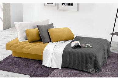 Vendo bellissimo divano letto a 3 posti di Dafne Italian Design, colore giallo senape, dal design moderno e accattivante. È la soluzione perfetta per chi cerca stile e massima funzionalità in poco spazio. Perché sceglierlo: • 3 in 1: Un comodo divano da giorno, un letto pronto all'uso per gli ospiti e un ampio vano contenitore interno per riporre coperte, cuscini o cambio stagione. • Apertura facilitata: Si trasforma in letto in pochi secondi grazie al sistema a ribalta/clic-clac. • Comfort: Include i 2 cuscini abbinati che vedi in foto. Dimensioni (dettagli nello schema in foto): • Larghezza: 190 cm • Profondità: 88 cm • Altezza schienale: 85 cm • Misura letto aperto: 190 x 110 cm Condizioni: Il divano è in ottime condizioni, poco utilizzato e tenuto con cura in ambiente non fumatori. Il tessuto è robusto e facile da pulire.