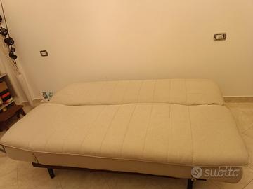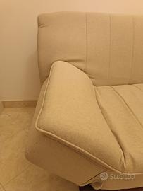 Vendo causa mancato spazio divano letto 3 posti marca Deghi, in tessuto beige con braccioli reclinabili, Nuovo già montato con possibilità di smontaggio al ritiro.