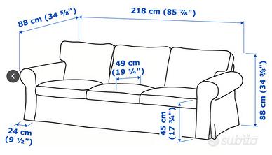 Divano letto matrimoniale / 3 posti modello Ektorp Ikea colore grigio + fodera di ricambio colore bianco.