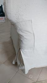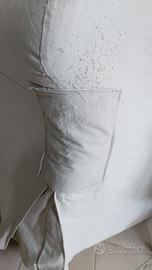Di colore beige, in tessuto di cotone molto resistente (tipo jeans) sfoderabile e lavabile, con qualche graffio da gatto sui lati, con pack cicita, ma in buone condizioni (vedi foto). È possibile acquistare le fodere di ricambio da Ikea in diversi colori. la struttura è perfetta e il letto comodissimo.