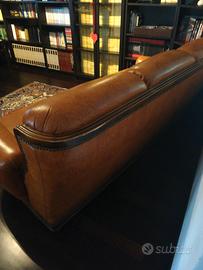 Divano letto matrimoniale 3 posti in legno e ecopelle color marrone con qualche graffietto di usura sul bracciolo e su un cuscino. Il materasso è da cambiare. Ha una macchia (come da foto) e dei piccoli strappetti da lacerazione sulla fodera del materasso. Molto pratico per l'a trasformazione in divano letto. Misure 195x110cm. Altezza da terra della seduta 45 cm. Altezza del divano 84 cm. Vendo per trasloco