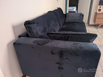 Divano letto 3 posti. Velluto blu. Maison du monde, modello Brooke.