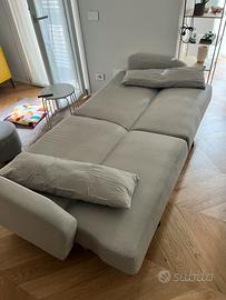 Vendo per cambio necessità un divano letto marca Maison du Monde, modello ELVIS, 3 posti trasformabile a letto, colore grigio chiaro, tessuto raso e sfoderabile, compreso due cuscini lunghi. Usato nemmeno 1 anno. Nessun graffio o macchia. Dimensioni: lunghezza 214 cm, profondità 87 cm, altezza 84. Larghezza posto letto aperto 140 cm. Solo ritiro.