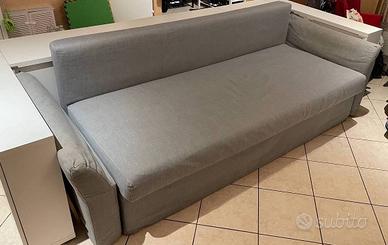 Divano letto 3 posti Holmsund ikea, grigio chiaro. Si trasforma velocemente in un divano letto, e ha un ampio contenitore sottostante, diviso in due scomparti, per riporre coperte o cuscini